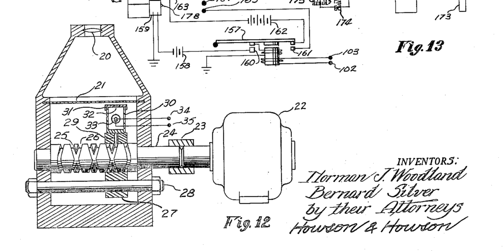 Der Professor wusste keinen Rat und wies das Ansinnen zurück. Zwei Ingenieursstudenten aber, Norman Joseph Woodland und Bernard Silver, hatten mitgehört und begannen, über die Sache nachzudenken. Ihr erster Einfall, ein Aufdruck mit ultravioletter Tinte, führte zu nichts: Die Tinte war teuer, verblasste schnell, und an ein automatisiertes Erfassen war nicht zu denken. Am Strand in Florida grübelte Woodland weiter. Er zeichnete Morsezeichen vor sich in den Sand – Punkte und Striche – und verlängerte sie dann mit dem Finger nach unten. Die so entstandenen dicken und dünnen Linien, überlegte er, müssten sich doch eigentlich mit Fotozellen optisch auslesen lassen. Woodland und Silver unternahmen erste Versuche mit lichtempfindlichen Röhren, und am 20. Oktober 1949 reichten die beiden die Patentschrift mit dem Titel «Classifying apparatus and method» ein.