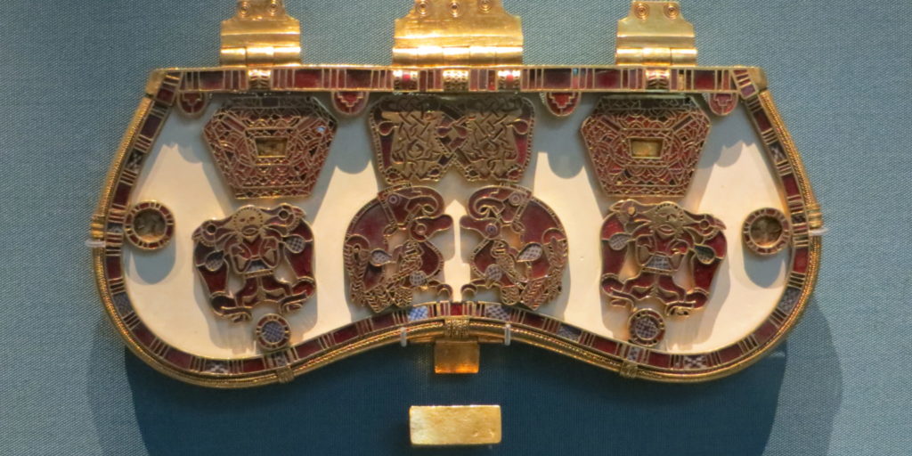 Mit Gold und Granat reich verzierter Beschlag der Geldtasche eines angelsächsischen Adligen (um 620). BRITISH MUSEUM, LONDON, JONONMAC46 (CC BY-SA)