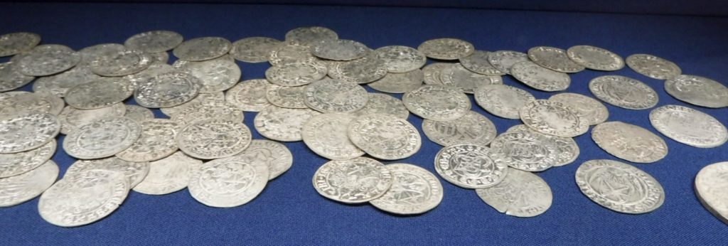 Hortfund im nördlichen Giebel des Konversenhauses von Kloster Altzella nahe der Stadt Groschen aus der Zeit von 1454 bis 1525 (2003). MÜNZKABINETT DRESDEN, (CC BY-SA)