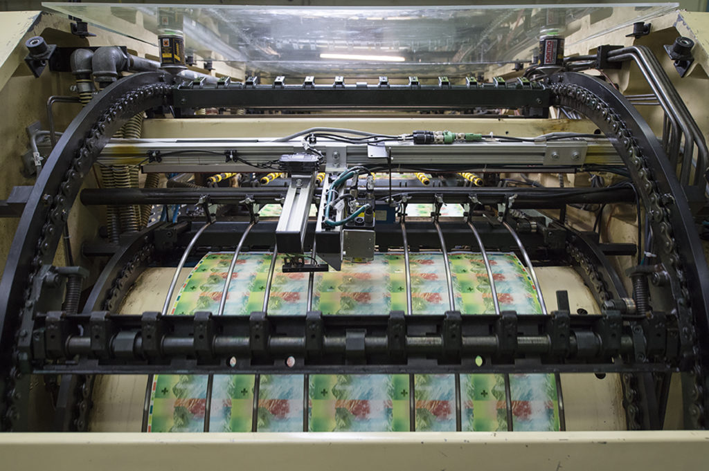 Druckbogen in der Offsetdruckmaschine. SCHWEIZERISCHE NATIONALBANK